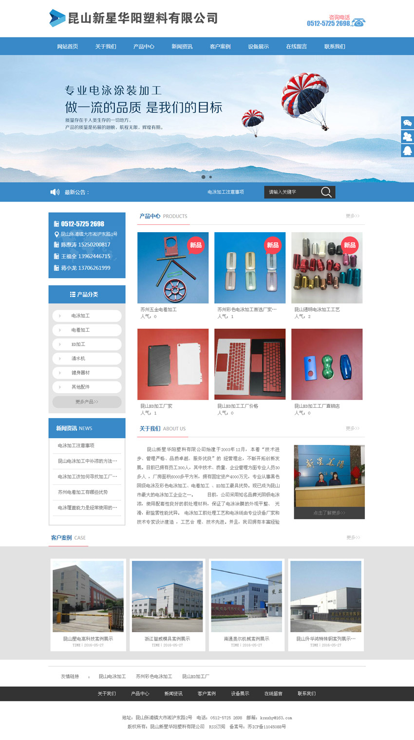 昆山新星華陽塑料有限公司始建于2003年12月,本著“技術(shù)進(jìn)步、管理嚴(yán)格、品質(zhì)卓越、服務(wù)優(yōu)良”的 經(jīng)營理念,不斷開拓創(chuàng)新發(fā)展。目前已擁有員工300人,其中技術(shù)、質(zhì)量、企業(yè)管理方面專業(yè)人員30多人 ,廠房面積6000多平方米,擁有固定資產(chǎn)4000萬元,專業(yè)從事黑色陰級電泳及彩色電泳加工、電著加工 、ED加工最具優(yōu)勢。現(xiàn)已成為昆山市最大的電泳加工企業(yè)之一。