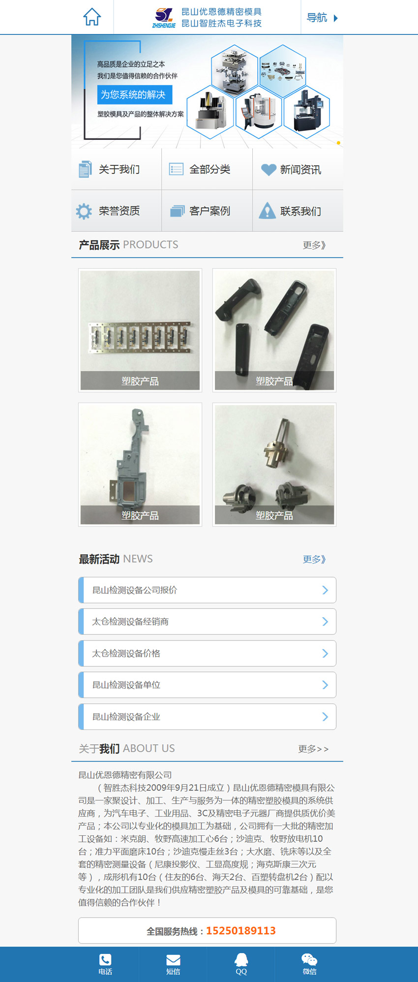 昆山優(yōu)恩德精密模具有限公司是一家聚設(shè)計、加工、生產(chǎn)與服務(wù)為一體的精密塑膠模具的系統(tǒng)供應(yīng)商,為汽車電子、工業(yè)用品、3C及精密電子元器廠商提供質(zhì)優(yōu)價美產(chǎn)品;本公司以專業(yè)化的模具加工為基礎(chǔ),公司擁有一大批的精密加工設(shè)備如:米克朗、牧野高速加工心6臺;沙迪克、牧野放電機10臺;準力平面磨床10臺;沙迪克慢走絲3臺;大水磨、銑床等以及全套的精密測量設(shè)備(尼康投影儀、工顯高度規(guī);??怂箍等卧龋尚螜C有10臺(住友的6臺、海天2臺、百塑轉(zhuǎn)盤機2臺)配以專業(yè)化的加工團隊是我們供應(yīng)精密塑膠產(chǎn)品及模具的可靠基礎(chǔ),是您值得信賴的合作伙伴!